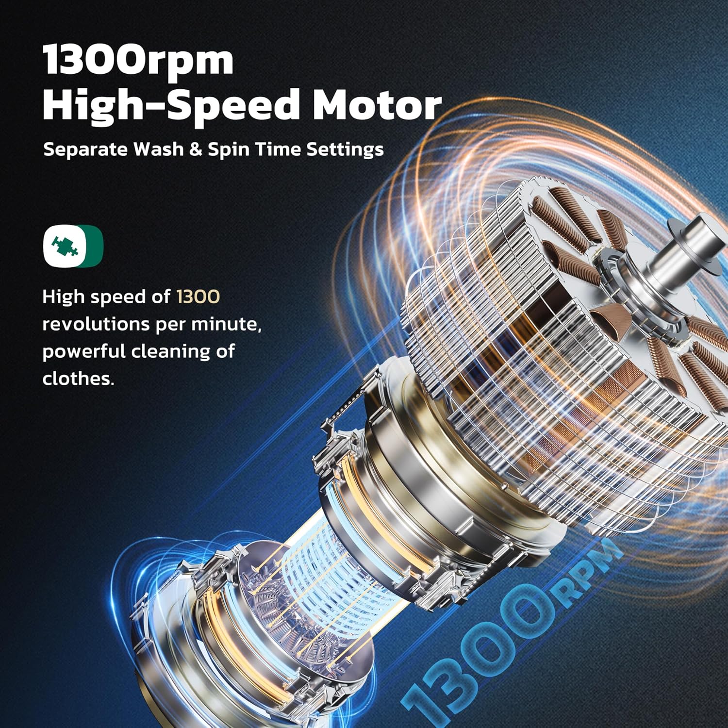 - [Powerful Performance+Sterilization Design] The portable washer machine adopts a newly upgraded copper core motor, providing a high speed of 1300RPM, 250W washing power+140W dehydration power, effectively removing stains. The silver ion penetration technology on the barrel wall deeply cleans the fibers of clothing, protecting your clothing health.
