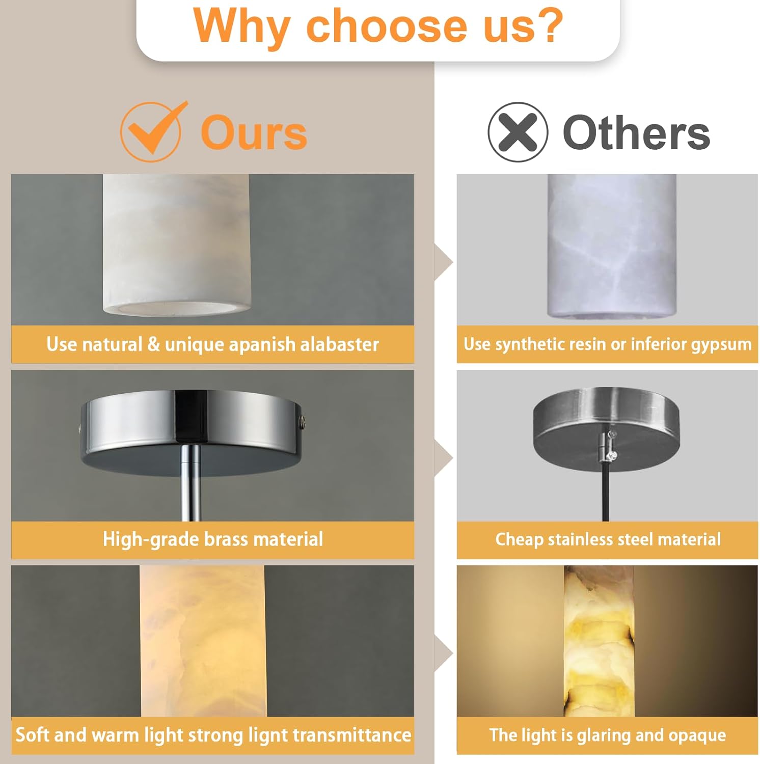 - 【Natural Spanish Alabaster】Alabaster lamp is made of alabaster imported from Spain, a natural stone solidified by volcanic lava for millions of years. It is strong and durable, and the lighting effect is bright and non-glare. Each piece of alabaster is carefully selected and hand-polished, presenting a delicate and charming appearance, enhancing the natural beauty of the stone.