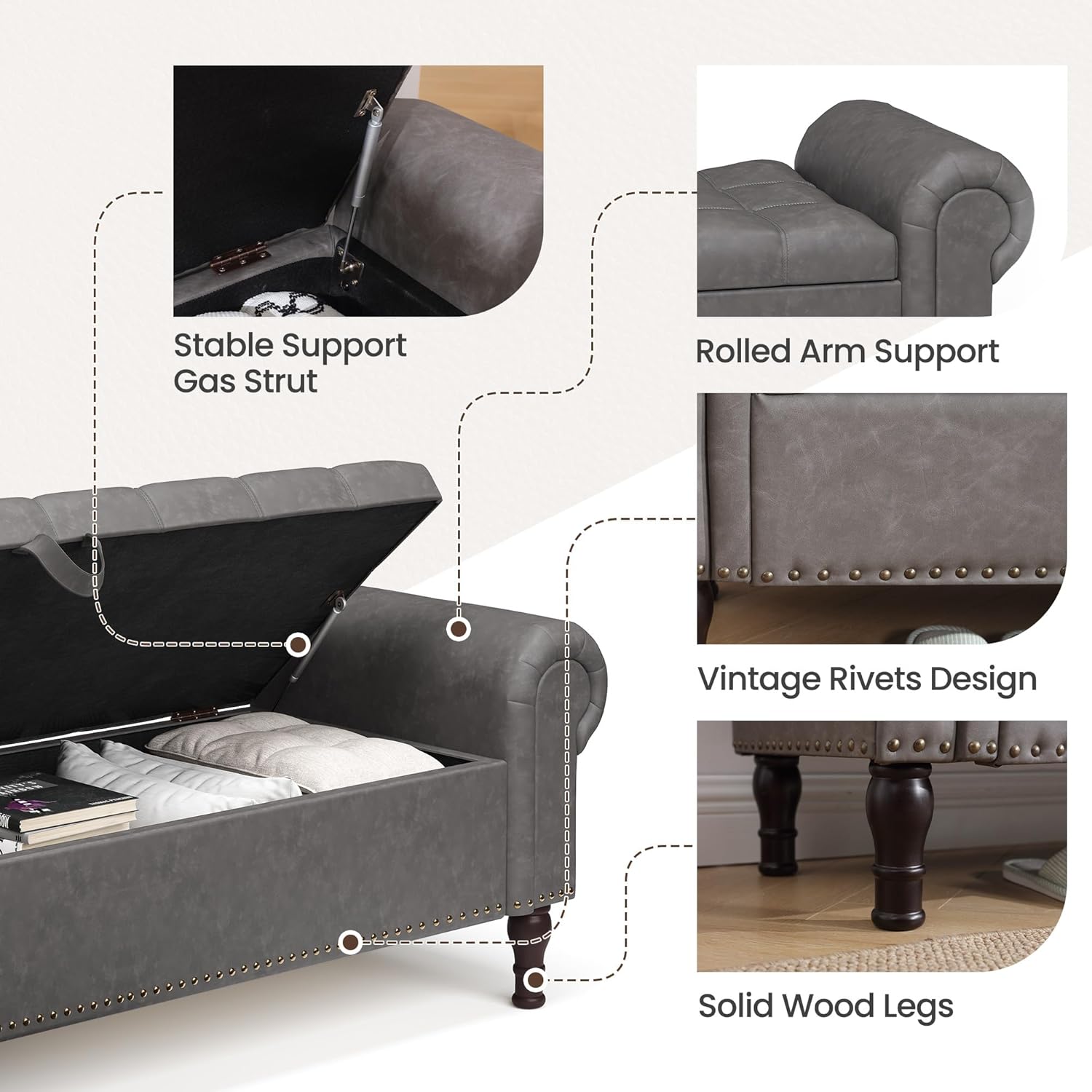 - 【EASY TO ASSEMBLE】The storage bench comes pre-assembled 80% and comes with a manual and installation tools. Simply insert the four legs and two armrests into place, and you can enjoy the storage bench in 10 minutes.