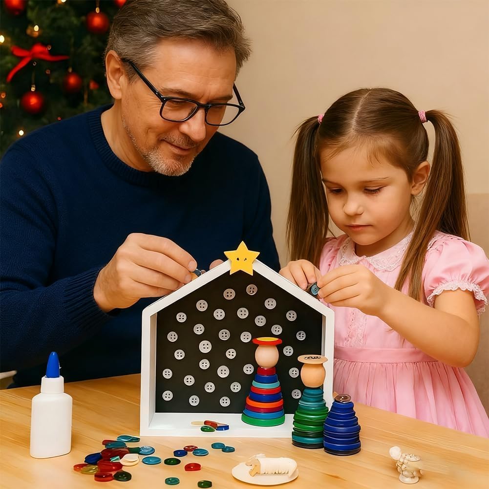 - Fun DIY Christmas Buttons Decorations:This Christmas button craft kit is a fun holiday craft for both kids and adults. It's easy and mess-free, allowing you to easily create your own Christmas tree and snowman decorations.